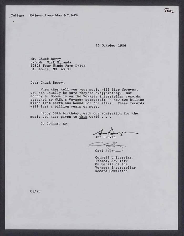 চাক বেরিকে লেখা কার্ল স্যাগানের চিঠি