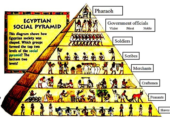 মিসরীয় সভ্যতার ইতিহাস মূলত শোষণ, অত্যাচার ও বিকৃত বিলাসীতার এক কুৎসিত কদাকার ইতিহাস। অন্যান্য সভ্যতার মতই এখানেও সমাজের ওপর তলায় বিপুল ঐশ্বর্য্যের বন্যা আর নিচের তলায় হাহাকার আর কান্না। উৎপাদন প্রণালী ছিল সামন্ততন্ত্রী ধরণের। মিসর ছিল কৃষি জমিতে পরিপূর্ণ। ফারাও দেশের সমস্ত জমির মালিক। ফারাওয়ের অনুগত সামন্তদের হাতে থাকত বড় বড় জমিদারী। ভূমিদাস আর দাসরা এই সব জমিতে কাজ করত। ভূমিদাস ছাড়াও মুক্ত কৃষক মিসরে ছিল। উৎপন্ন ফসলের এক পঞ্চমাংশ তারা রাজকীয় শস্যাগারে কর হিসেবে জমা দিত।